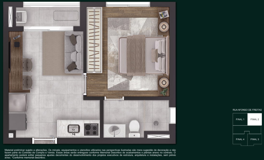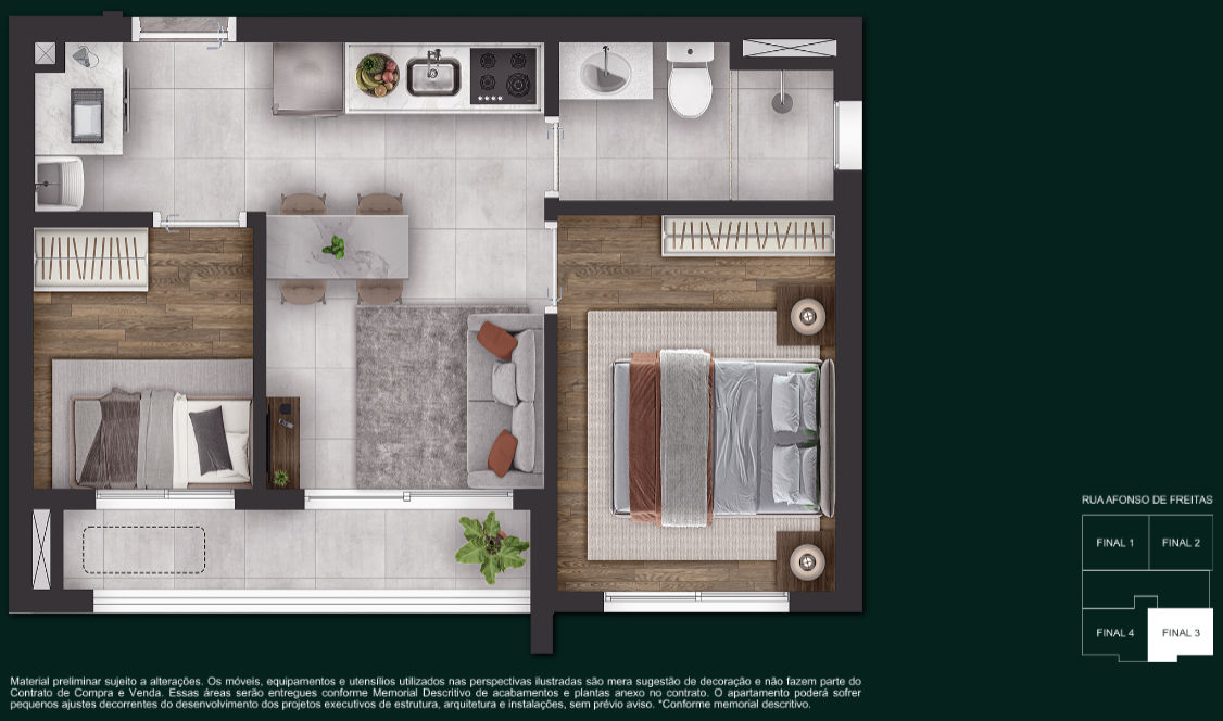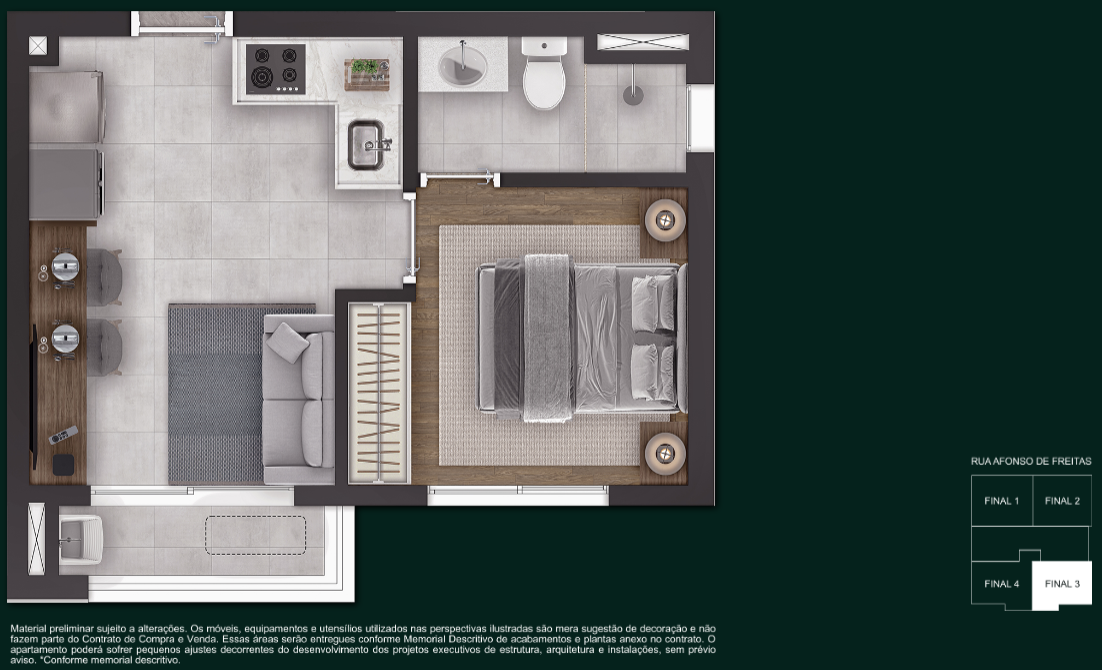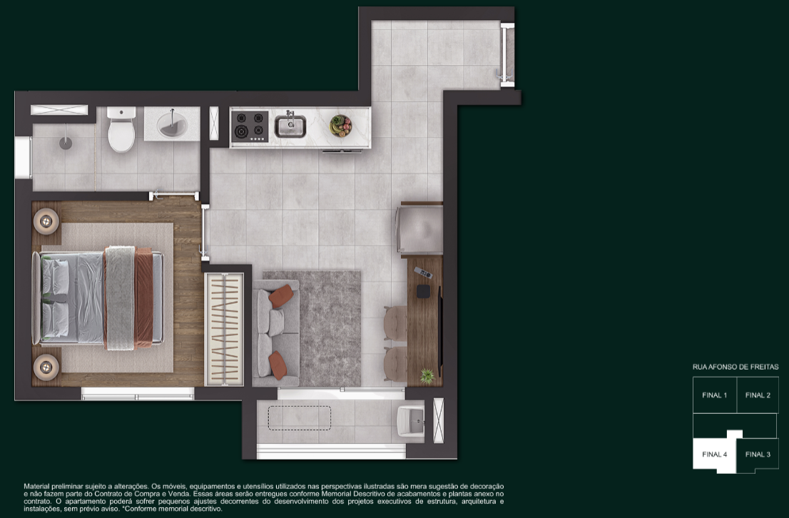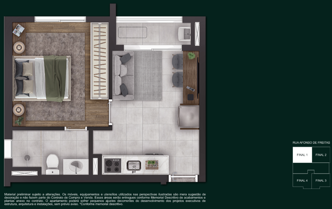 1 Dormitório — 28 m² a 31 m²