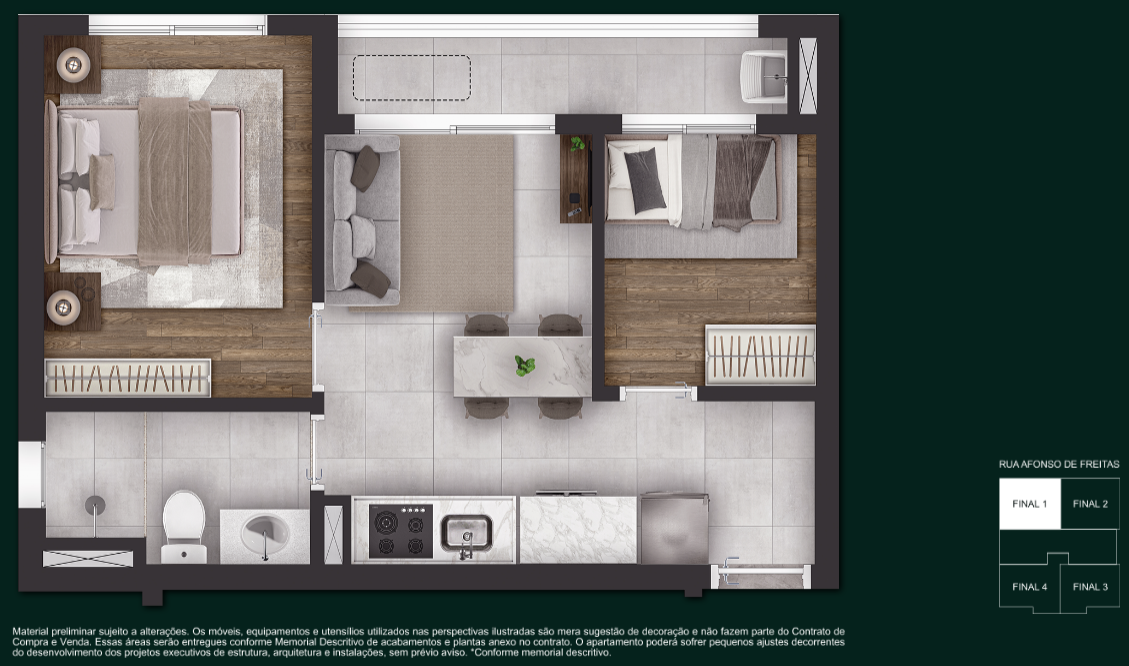 Apartamentos de 1 e 2 dormitórios