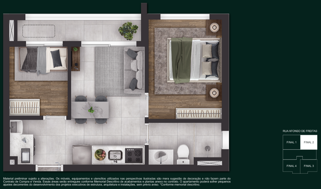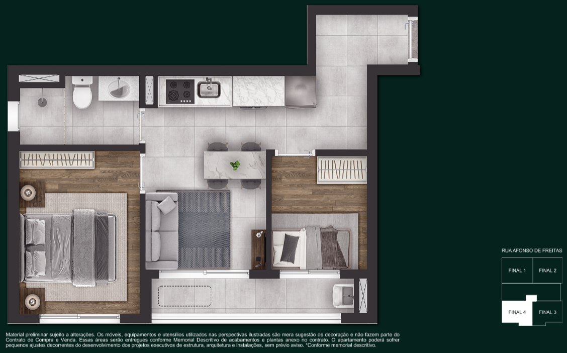 Garden 2 Dormitórios — 52 m² a 57 m²