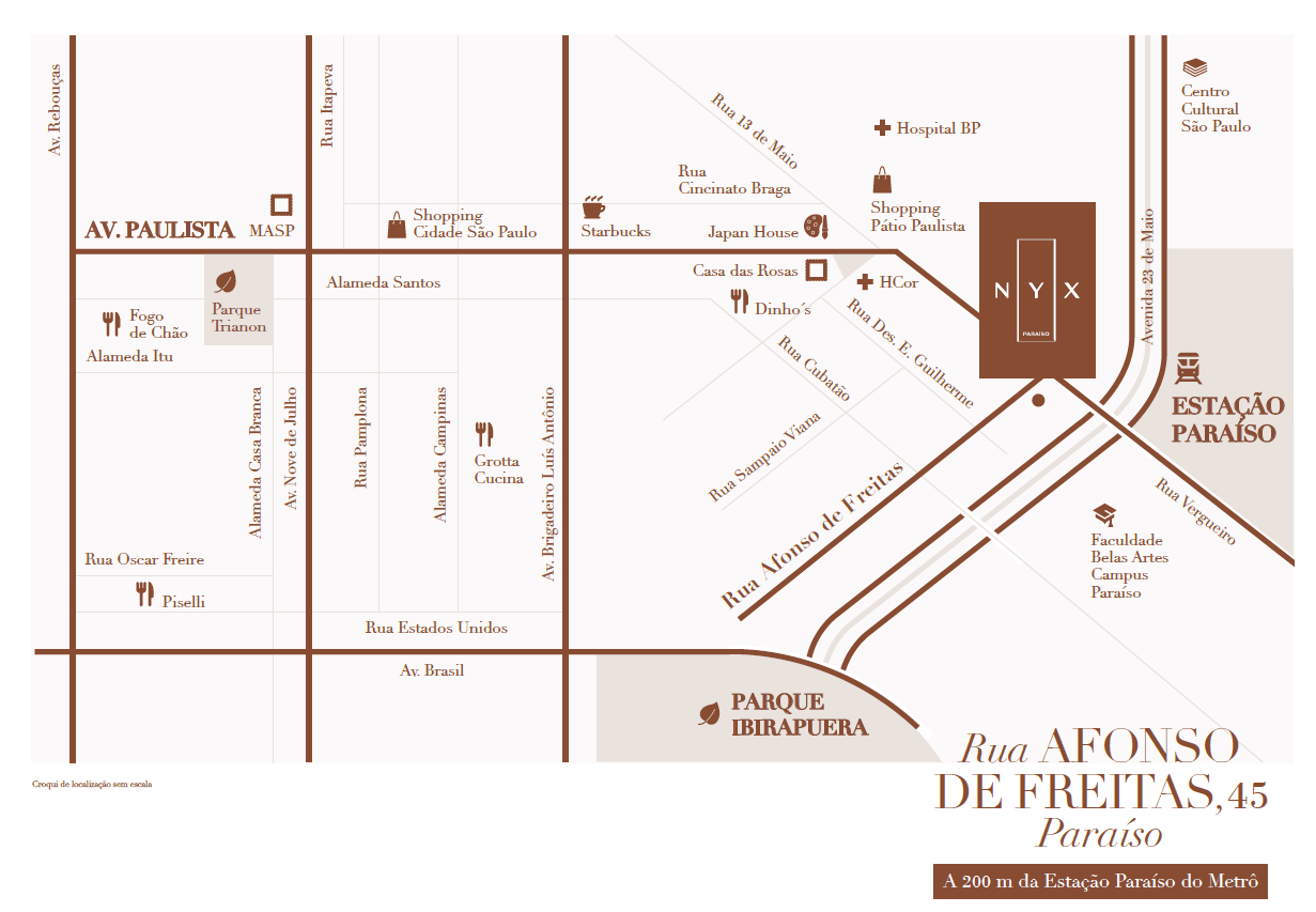 * O empreendimento NYX Paraíso possui unidades classificadas como HMP (Habitação de Mercado Popular), conforme a legislação municipal de São Paulo (Decreto nº 64.244/2025 e Lei nº 16.050/2014, art. 47, redação conferida pela Lei nº 17.975/2023). A aquisição ou locação destas unidades está sujeita à comprovação de renda familiar e aos limites de preço estabelecidos pela Prefeitura de São Paulo. O adquirente ou locatário (e seus sucessores) deverá respeitar integralmente as regras e restrições de destinação, uso e comercialização destas unidades. Consulte o Memorial de Incorporação e os termos contratuais para detalhes completos.
